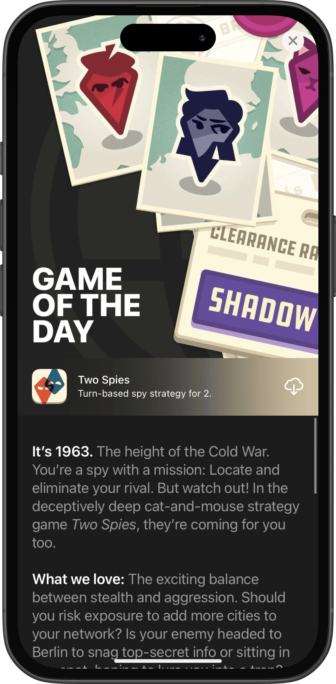 A thrilling game of espionage.Apple’s App Store Editorial Team